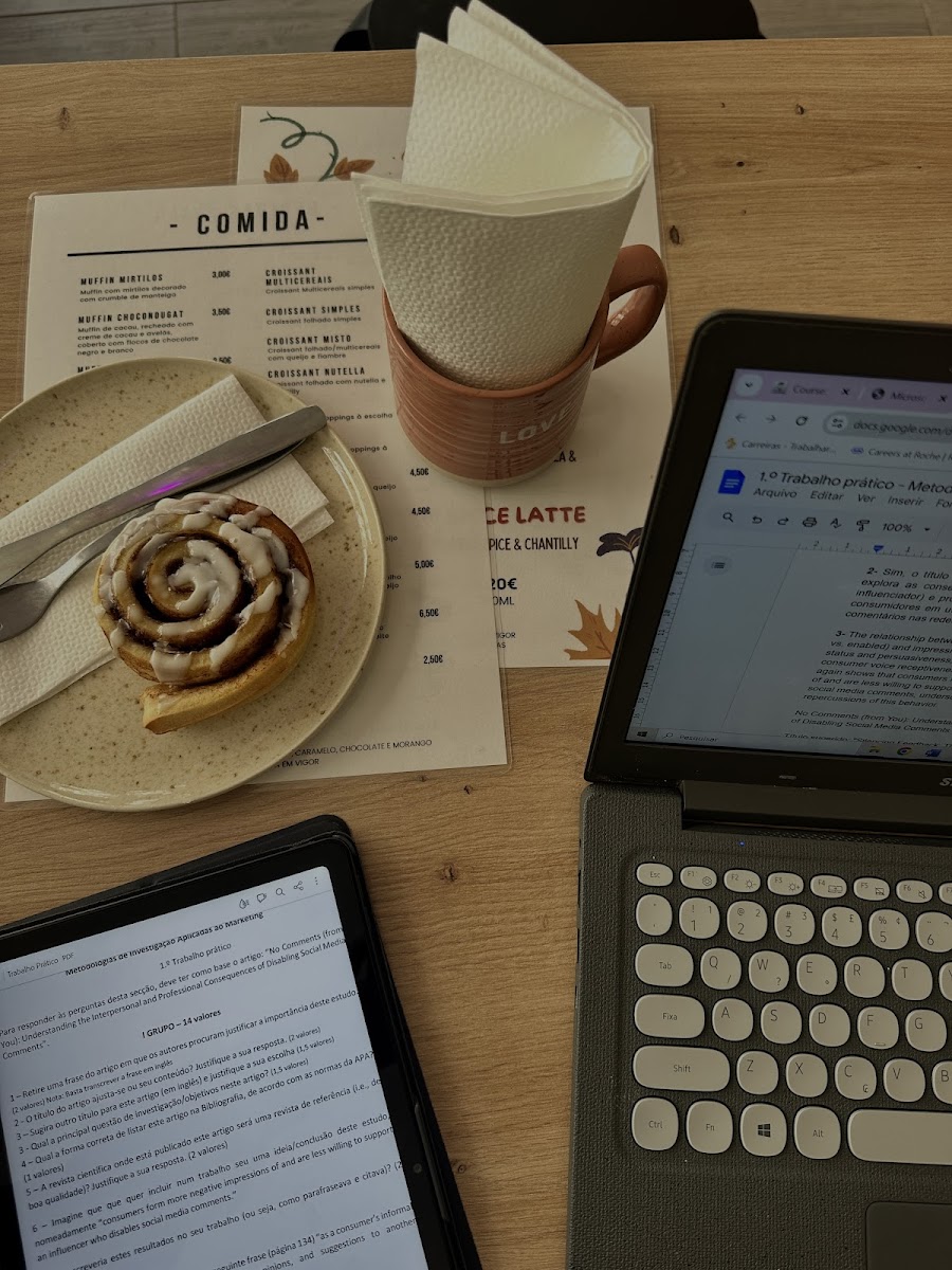 Pair your coffee with one of their irresistible pastries. The Cinnamon Roll, as Josie Nobre discovered, is an absolute must-try. With a perfectly baked dough and a pronounced cinnamon flavor that dances on your palate, it’s the ideal complement to your morning brew. Or if you're looking for something sweet yet fulfilling, treat yourself to their delightful pancakes, served with choices like Nutella and fresh fruit, a hit among customers like Catarina Salgueiro.
